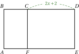 Зурагт өгсөн $CDEF$ тэгш өнцөгтийн талбай $ABCF$ тэгш өнцөгтийнхөөс 2 дахин их байв. Хэрэв $CD=2x+2$ бол $AE=?$