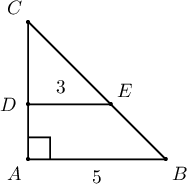 $\dfrac{BE}{EA}=3$ бол $EF=\dfrac{\fbox{a}}{\fbox{b}}$ болох ба