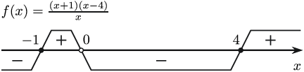 $x\in[-1;0[\cup[4;+\infty[$ байна.