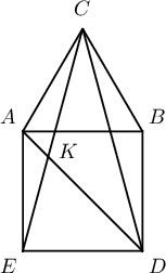 4. Зөв $ABC$ гурвалжны гадна талд $ABDE$ квадратыг байгуулжээ (зураг). $AD$, $CE$ хэрчмүүд $K$ цэгт огтлолцдог бол $CK=DK$ гэдгийг батал.
