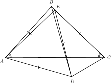 $AD=AB=AE$ тул $\angle ABE=\angle AEB=88^\circ=\angle ABC$ болох тул $E$ цэг $BC$ тал дээр орших болно.