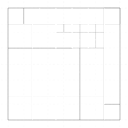 4. $1\times 1$, $2\times 2$, $3\times 3$ хэмжээтэй 3 төрлийн квадратуудаас, төрөл бүрээс тэнцүү тоотой оролцуулан хийж болдог, хамгийн жижиг квадрат байгуул.