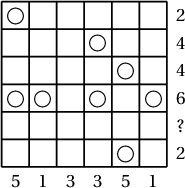 1. Хүснэгтийн мөр, баганад байх бөмбөгний тоо өгөгджээ. Эдгээр тоонд тохируулан хэсэг бөмбөгийг нэмж зур. $?$-ийн оронд ямар тоо байх вэ?