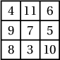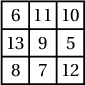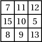 6. Дараалсан 2 тоо хөрш нүдэнд байхаар 2, 3, 4, 5, 6 гэсэн таван тоог дараах хүснэгтэд хэдэн янзаар нэмж бичиж болох вэ? Нэг нүдэнд нэгээс олон тоо бичихгүй.