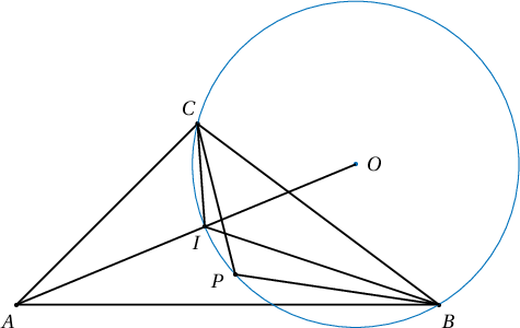 болно. Иймд $P$ цэг $BCI$ гурвалжныг багтаасан тойрог дээр байна.