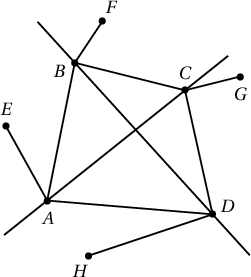 Эсрэг тохиолдолд хэсэг тус бүрд нэг, нэг цэг байна. $I$ хэсэгт харъяалагдах цэгийг $E$, $II$ хэсэгт харъяалагдах цэгийг $F$, $III$ хэсэгт харъяалагдах цэгийг $G$, $IV$ хэсэгт харъяалагдах цэгийг $H$ гэе. Тэгвэл $AE$, $BF$, $CG$, $DH$ хэрчмүүдийг нэгэн зэрэг огтлох шулуун олдохгүй. Учир нь ямар ч шулуун огтлолцсон хоёр шулуунаар үүсэх 4 хэсгийг бүгдийг нь дайрахгүй.
