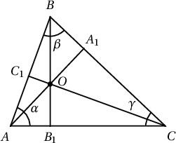 Бодолт. $AB=c$, $BC=a$, $AC=b$, $AA_1=h_1$, $BB_1=h_2$, $CC_1=h_3$, $AO=h'_1$, $BO=h'_2$, $CO=h'_3$ гэж тэмдэглэе.