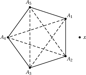 Иймд аль нэг 5 оройгоор үүсэх хэсэг нь $C_5$ байсан гэе. Үлдэх оройг $x$ гэе. Зурагт үзүүлсэнтэй адилаар ирмэгийг хэрчмээр, ирмэг бишийг тасархай шугамаар холбосон байг.