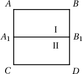 Бодолт. Нэгж квадратаа $\dfrac{1}{16}$ талтай 256 жижиг квадратад хуваая. Тэгвэл эдгээр жижиг квадратын аль нэгд нь манай тэмдэглэсэн цэгээс дор хаяад 8 цэг оршино. Энэхүү жижиг квадратаа зурагт үзүүлсэнээр 2 тэнцүү тэгш өнцөгт болгож хуваая. Сонирхож буй 8 цэгээс $k$ ширхэг нь I тэгш өнцөгтөд $8-k$ ширхэг нь II тэгш өнцөгтөд агуулагддаг гэе.