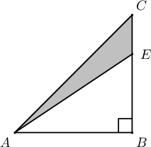 $ABC$ тэгш өнцөгт гурвалжны $AB$ гипотенуз дээр төв нь орших тойрог $AC$ ба $BC$ талуудыг харгалзан $E$, $D$ цэгүүдээр шүргэв. Хэрэв $AE=1$, $BD=3$ бол $\measuredangle ABC=\fbox{ab}^\circ$, $S_{ABC}=\fbox{c}+\fbox{d}\sqrt3$, $AB=\fbox{e}+\fbox{f}\sqrt3$ байна.