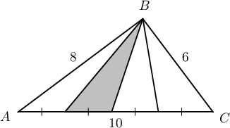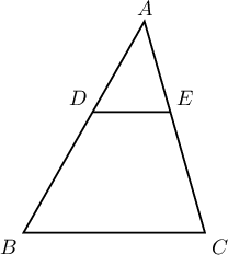 $AB=8$, $AC=6$, $BC=7$ ба $CD+BE=4$ бол $DE=\fbox{a}$,