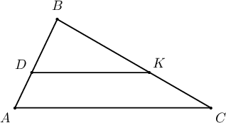 Зурагт үзүүлсэн $AC\parallel DK$ ба $AD=2$, $DB=3$, $DK=6$ бол $AC=?$