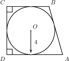 $|BC|=9$, $|CD|=8$, $|AD|=4$ байв. Трапецийн $A$ оройгоос $BC$ тал