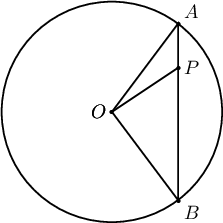$R$ радиустай тойргийн доторх орших $P$ цэгийг дайруулан харилцан перпендикуляр хоёр хөвч татав. Эдгээрийн нэг нь тойргийн төв ба $P$ цэгийг дайрсан шулуунтай $\alpha>0$ өнцөг үүсгэх ба төвөөс $a$ зайтай байв. Эдгээр хөвчүүдээр диагоналаа хийсэн дөрвөн өнцөгтөд дугуй багтсан бол энэ дугуйн талбайг ол.