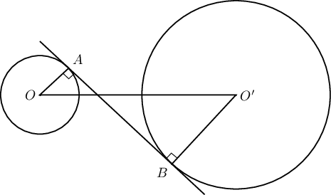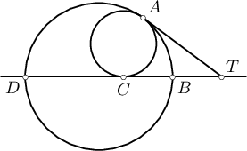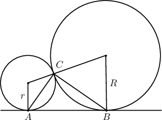 $R$ ба $r$ радиустай тойргууд гадаад байдлаар $A$ цэгт шүргэлцэж байв. Уг хоёр тойргийн ерөнхий шүргэгч $AD$ ба $BC$ шулуунууд нь $D$ цэгт огтлолцох бол $AD^2=Rr$ гэж батал.
