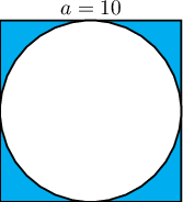 $10$ см талтай квадратад тойрог багтсан бол зурагт үзүүлсэн будагдсан хэсгийн талбайг ол.