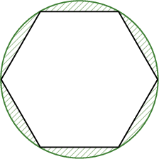Тойрогт багтсан зөв 6 өнцөгтийн периметр 24 бол зурагт дүрслэгдсэн будагдсан хэсгийн талбайг ол.