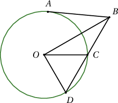 $AB$-шүргэгч, $BD$-огтлогч, $\angle DOC=60^\circ$, $DC=CB$, $AB=\sqrt6$ бол $OB=?$