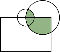 $A$ жижиг дугуй, $B$ том дугуй, $C$ тэгш өнцөгт дотор орших цэгүүдийн олонлог. Будагдсан хэсэг нь олонлогууд дээрх ямар үйлдлийн үр дүнд үүссэн бэ?