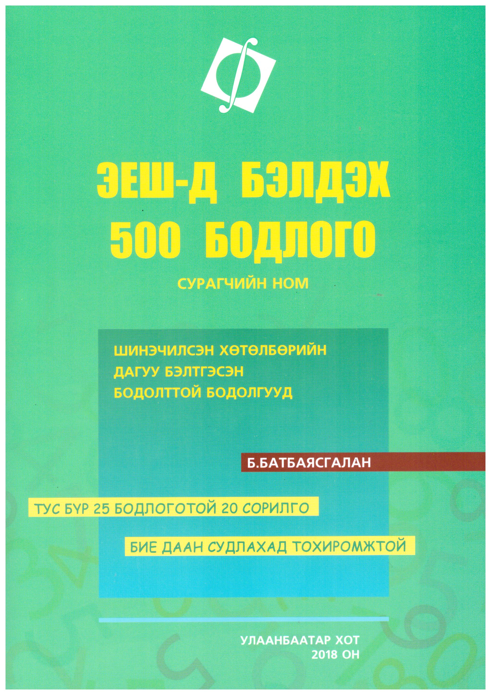 - ЭЕШ-д бэлдэх 500 бодлого, ЭЕШ-д бэлдэх 1000 бодлого, ЭЕШ-д бэлдэх 1500 бодлого гэсэн цуврал 3 номыг эмхэтгэн гаргана. Эдгээр номыг 2013-2018 хооронд манай Монгол Бодлогын сан сайтад тавигдсан онлайн сорилгуудын дүнд үндэслэн бүтээж байгаа бөгөөд тус бүр нь 25 бодлоготой 20 сорилго буюу нийт 500 бодлоготойгоор хэвлэгдэн гарна. Мэдээж манай сайтад тавигддаг бүх бодлогуудын адил заавар, бодолттой байна.