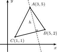 цэгээс $BC$ шулуун хүртэлх зайг (өндөр) ол.