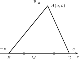 Бодолт: $BC$ хэрчим $x$ тэнхлэг дээр, дундаж цэг $M$ нь $y$ тэнхлэг дээр байхаар координатыг сонговол $M(0,0)$, $A(a,b)$, $B(-c,0)$, $C(c,0)$ болно. Эндээс
