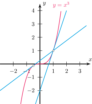 Бодолт: $y'=3x^2$ тул $(t,t^3)$ цэгт татсан шүргэгч шулууны тэгшитгэл