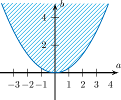 $f(x)=x^3+ax^2+bx+1$ функц монотон өсдөг байх $(a, b)$ координаттай цэгүүдийн хувьсах мужийг дүрсэл.