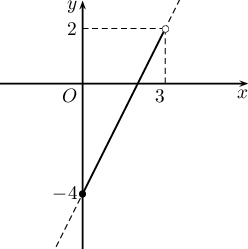 - $y=2x-4\quad(0\le x< 3)$