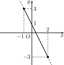 - $y=-2x+1\quad(-1\le x\le 2)$