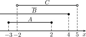 - $A=\{x\mid -3\le x\le 2$, $B=\{x\mid 2x-8>0\}$, $C=\{x\mid -2< x< 5\}$ бол дараах олонлогуудыг ол.