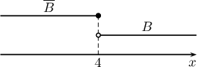 - $2x-8>0\Leftrightarrow x>4$ тул $B=\{x\mid x>4\}$ ба $\overline{B}=\{x\mid x\le 4\}$