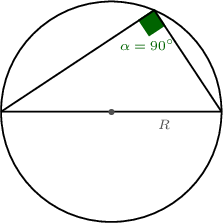 Заавар: Тэгш өнцөгт гурвалжныг багтаасан тойргийн радиус нь гипотенузын хагастай тэнцүү байдаг бөгөөд гипотенуз нь багтаасан тойргийн диаметр байна.