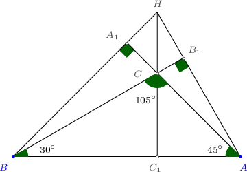 Бодолт: $\triangle BB_1A$ тэгш өнцөгт гурвалжнаас $\measuredangle B_1AB=\measuredangle C_1AH=90^\circ-30^\circ=60^\circ$ байна.