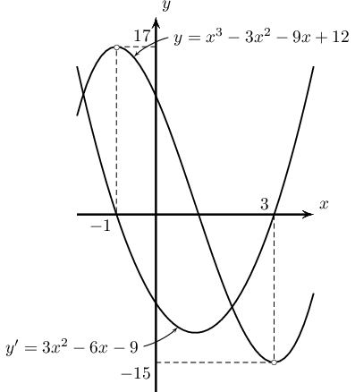 $y=x^3-3x^2-9x+12$ функцийн буурах завсрыг ол.