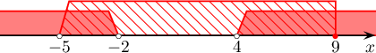 тул $x\in]-5;-2[\cup]4;9]$ байна.