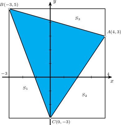 $A(4,3)$, $B(-3,5)$, $C(0,-3)$ бол $\triangle ABC$-ийн талбайг ол.