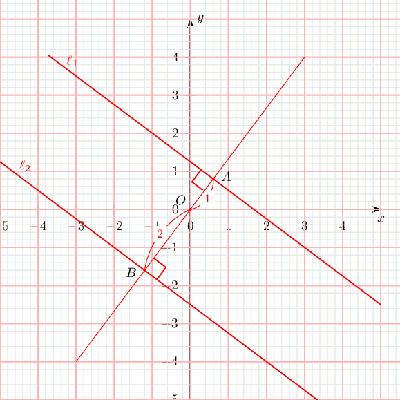 $\ell_1\colon 3x+4y+5=0$ шулуун ба $\ell_2\colon 9x+\fbox{ab}y-30=0$ шулуунууд параллель бол координатын эхээс $\ell_1$ хүртэлх зай $\fbox{c}$, $\ell_2$ хүртэлх зай $\fbox{d}$; $\ell_1$ ба $\ell_2$ шулуунуудын хоорондох зай нь $\fbox{e}$ байна.