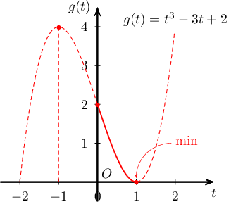$t$-ийн муж олохдоо $0^\circ\leq \theta\leq 90^\circ$ тооц. Функц $\min$ утгаа буурах завсар ба өсөх завсарыг зааглаж байгаа $t_0$ цэг дээр авдаг.