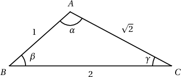 $\triangle ABC$-ийн хувьд $a=2$, $b=\sqrt2$, $c=1$ байв.