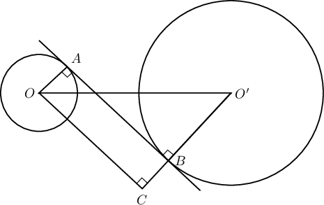 $OCO^\prime$ тэгш өнцөгт гурвалжнаас $OC$-г ол.
