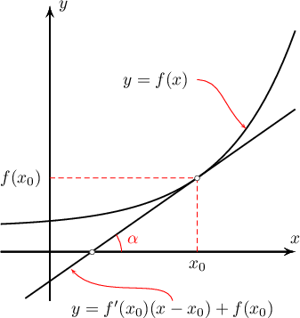 байна. Шүргэгчийн $OX$ тэнхлэгийн эерэг чиглэлтэй үүсгэх өнцөг $\alpha$ бол $\tg\alpha=f^\prime(x_0)$ байна. Энэ тоо нь уг шулууны өнцгийн коэффициент болно.