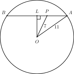$$LP^2=OP^2-OL^2=7^2-40=9\Rightarrow LP=3$$ байна. Иймд $BP=BL+LP=9+3=12$.