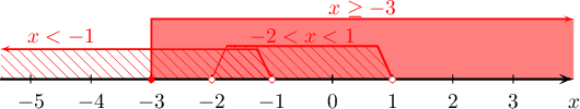 ба $\left[\begin{array}{l}x<-1\\ -2< x<1\end{array}\right.\Leftrightarrow x<1$ тул $-3\le x<1$ буюу $x\in[-3;1[$ байна.