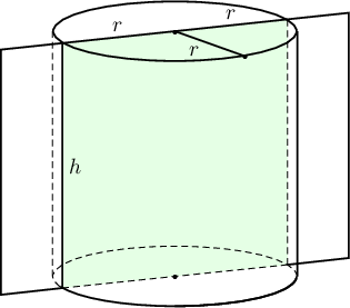 Заавар: Цилиндрийн суурийн радиус $r$, өндөр нь $h$ бол эзлэхүүн нь $V=\pi r^2h$, тэнхлэг огтлолын талбай нь $S=2rh$ байна.