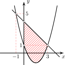 $y=x^2-3x+1$ парабол, $y=4-x$ шулуун ба $OY$ тэнхлэгээр хүрээлэгдсэн дүрсийн талбайг ол.
