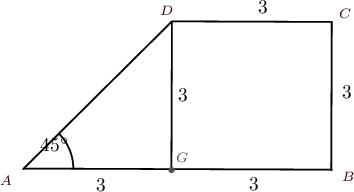 $\angle ADG=45\circ$ учир $AD=\sqrt{3^2+3^2}=3\sqrt2$ тул периметр нь $12+3\sqrt2.$