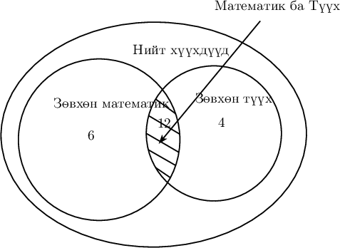 Ангийн хүүхдүүдийн 16 нь түүхийн, 18 нь математикийн хичээлээр, 12 нь математик ба түүхийн хичээлээр ЭЕШ өгөх бол анги хамгийн цөөндөө хэдэн хүүхэдтэй вэ?