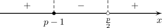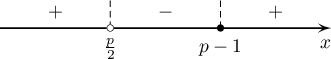 байна. $p-1$, $\frac{p}{2}$ тоонуудыг тоон шулуун дээр байрлуулж муж тус бүр дээр тэнцэтгэл бишийг бод.