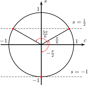 болно. Иймд $$\left[\begin{array}{c}\sin x=-1\\ \sin x=\dfrac12\end{array}\right.$$